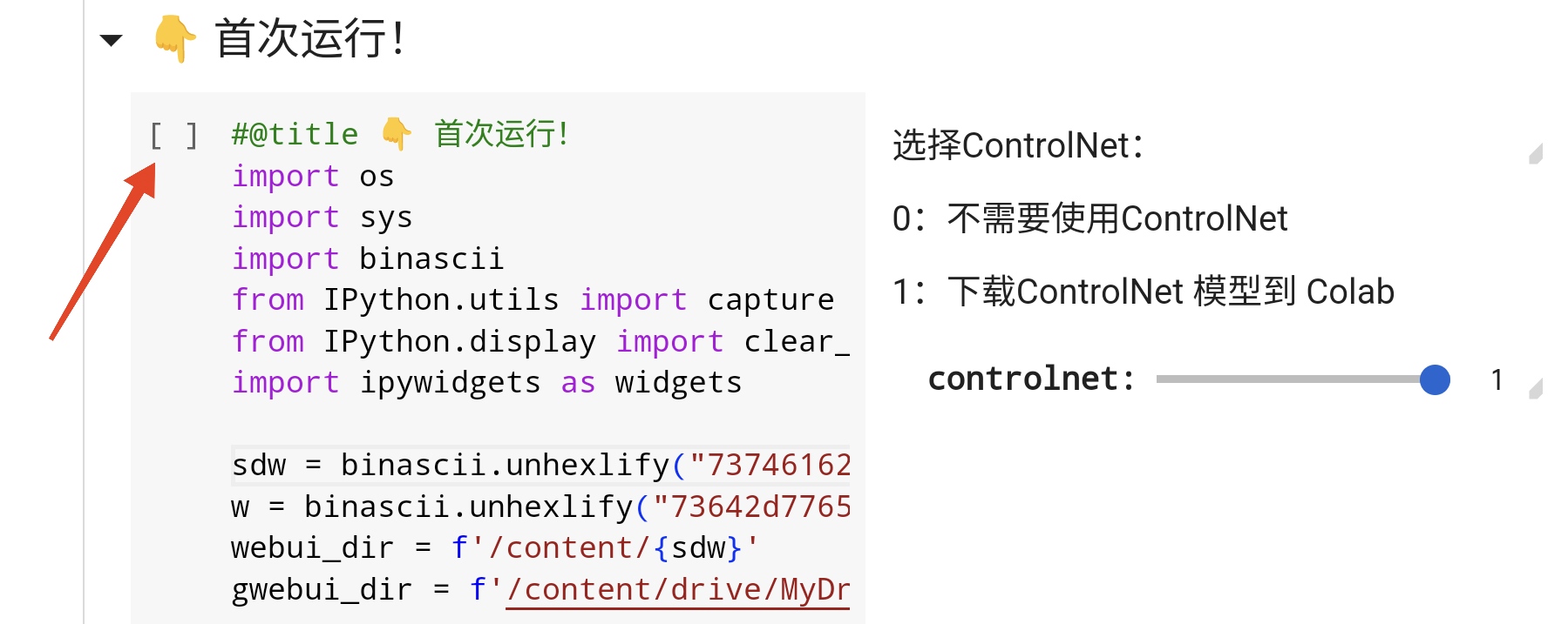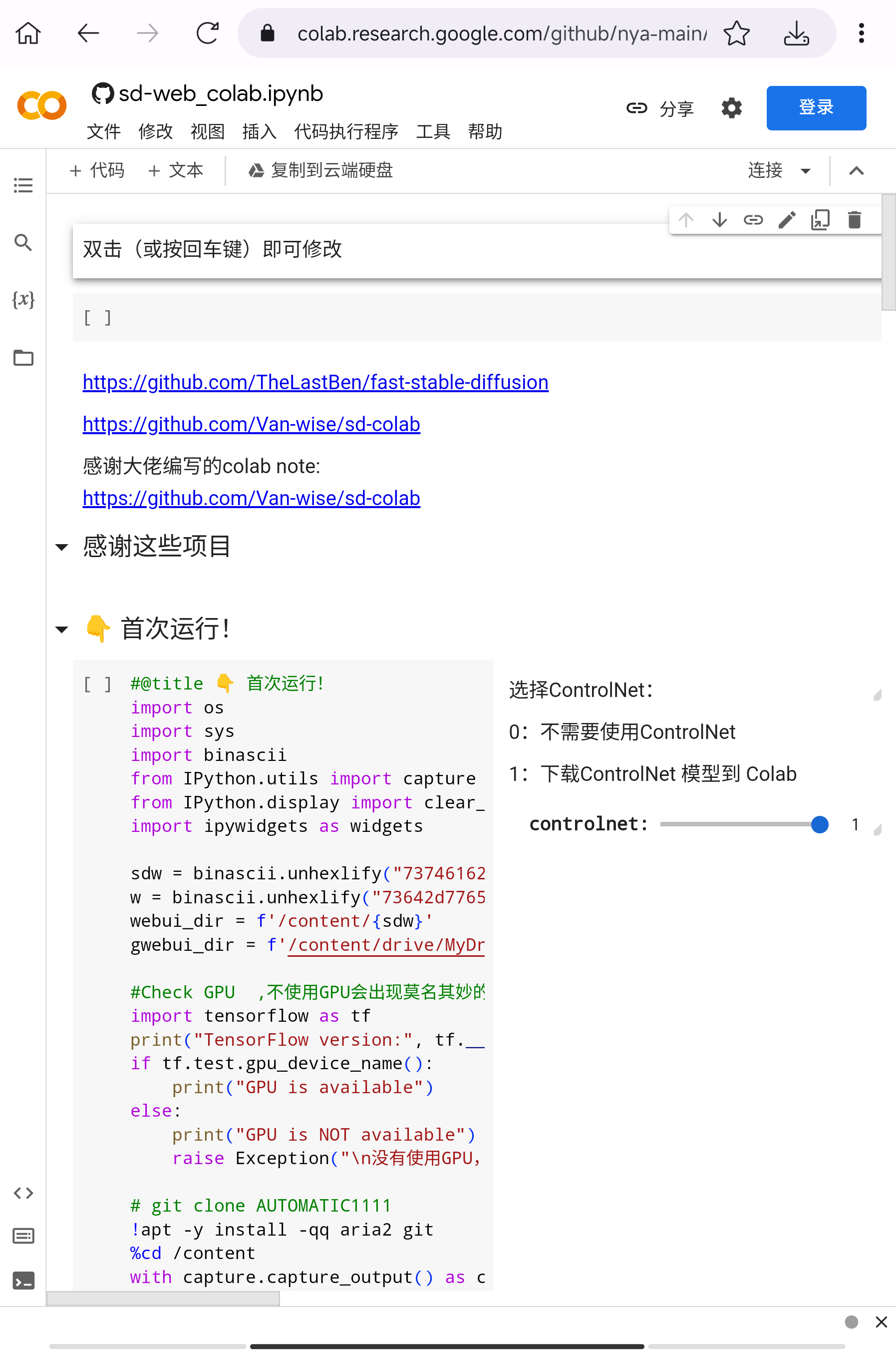 在"启动 Stable Diffusion"处继续下拉,跟随提示进行.